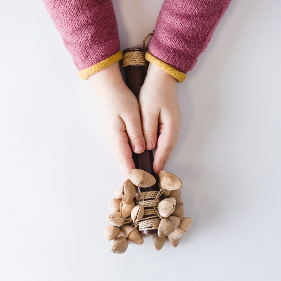 Este instrumento artesanal está compuesto por cáscaras de kenari unidas a una varilla de madera, creando un sonido ligero, seco y muy agradable al oído. El Meinl Kenari es ideal para acompañar juegos musicales tranquilos, actividades de relajación o ejercicios de atención plena, tanto en casa como en el aula.