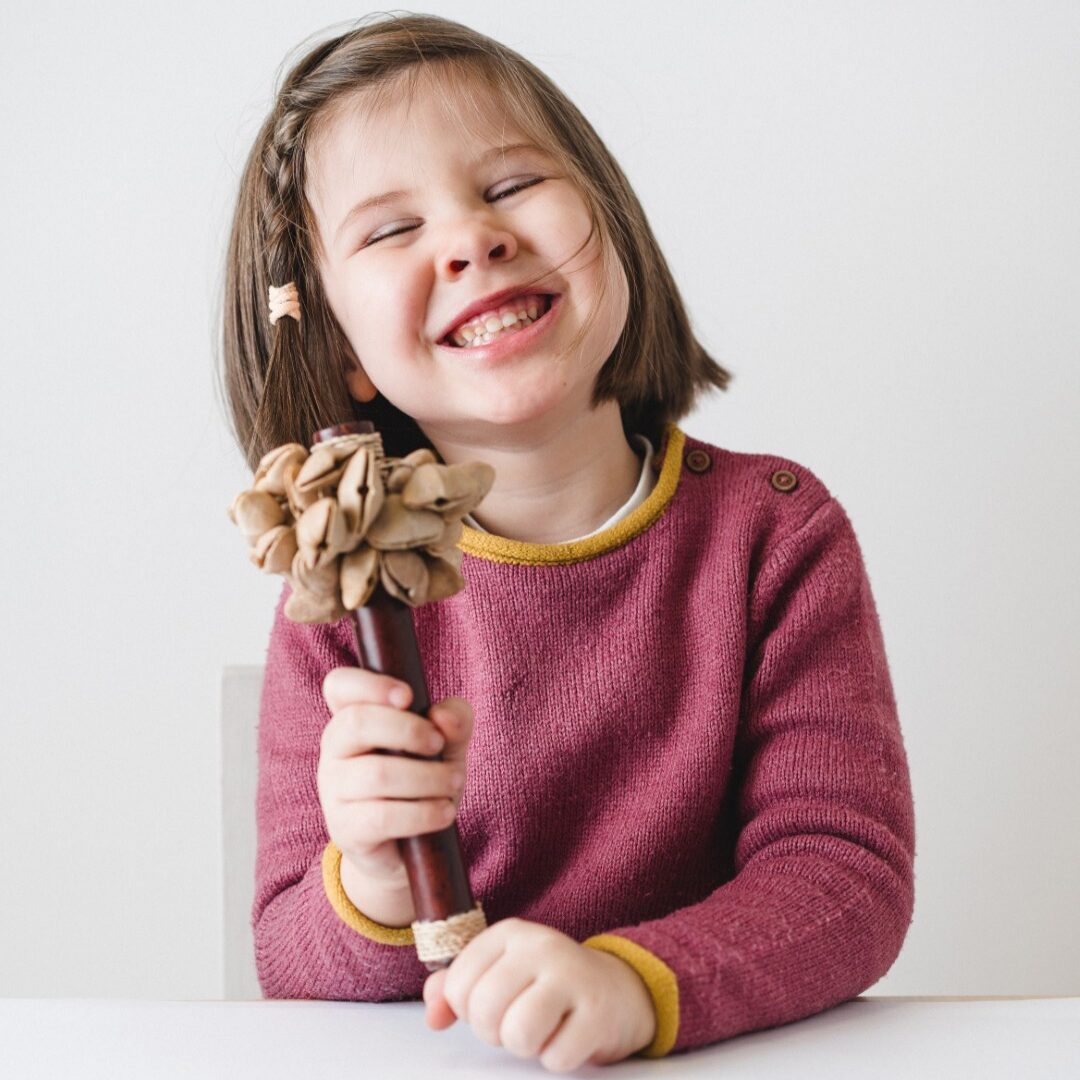 Su diseño permite un agarre cómodo desde edades tempranas, favoreciendo la coordinación óculo-manual, el ritmo y la escucha activa. Su sonido no resulta invasivo, por lo que es perfecto también para espacios compartidos o momentos de calma.