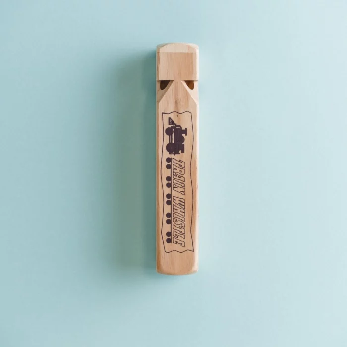 Fabricado en madera natural, es resistente, fácil de soplar y muy atractivo por su sonido y diseño. Recomendado desde los 3 años.