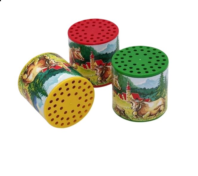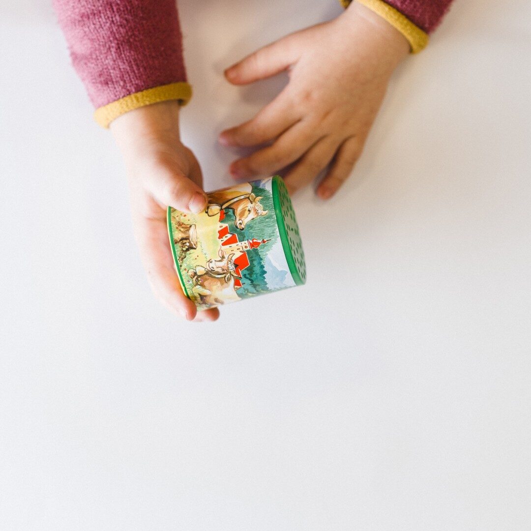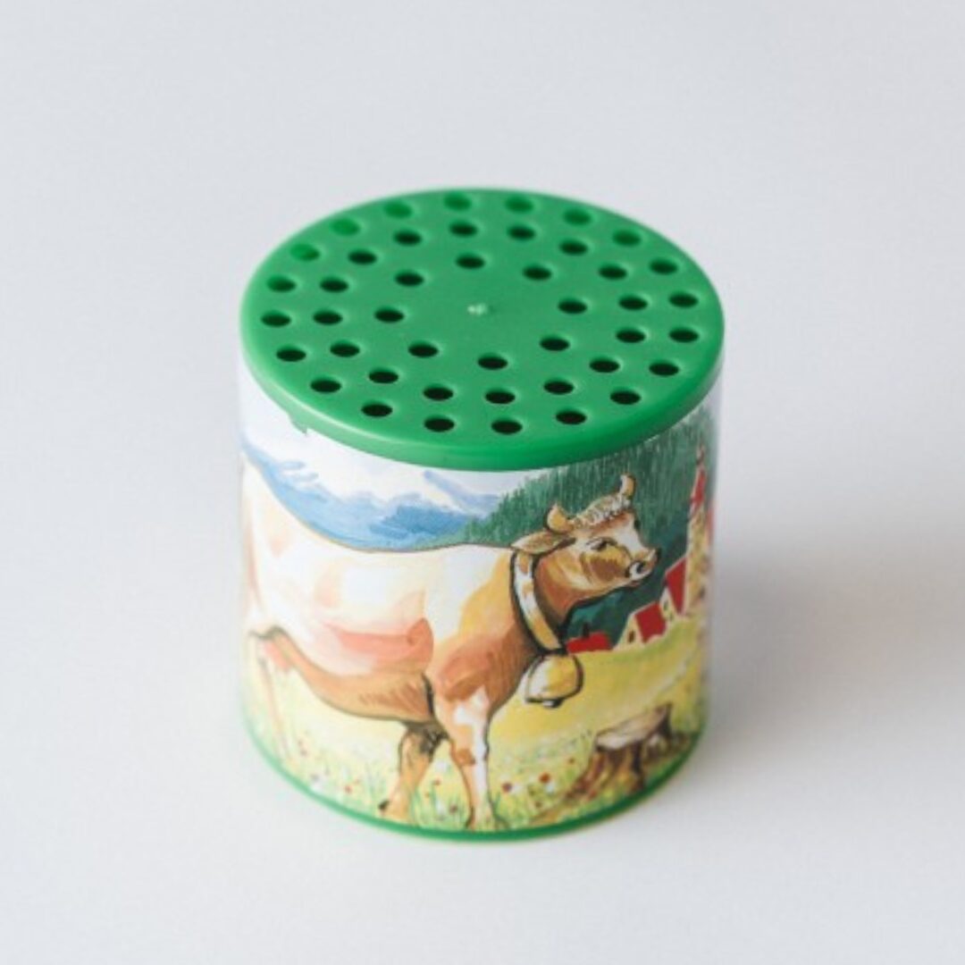 Descubre la clásica vaca en lata: un juguete sonoro que sorprende con un mugido realista cada vez que giras el bote. Fácil de usar y muy resistente, es perfecto para despertar la curiosidad de los más pequeños, promover la exploración auditiva y favorecer la imitación vocal de manera divertida y segura.